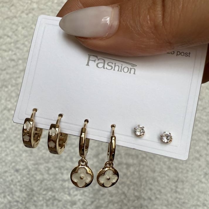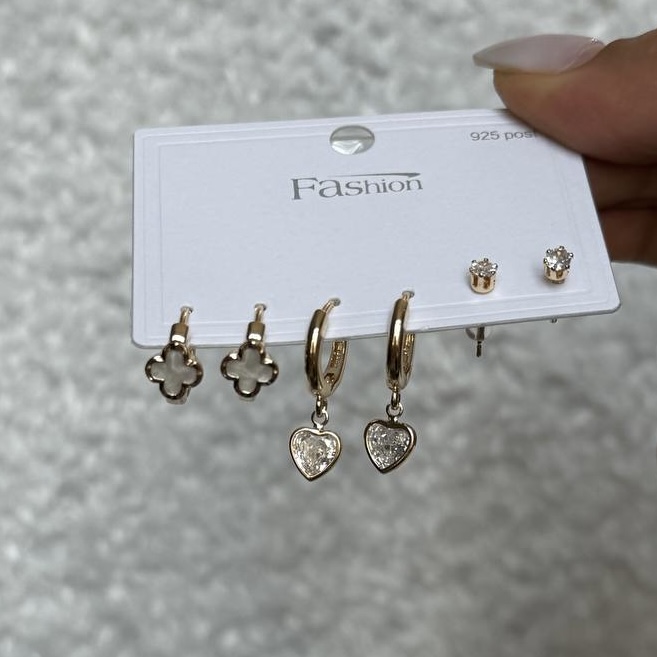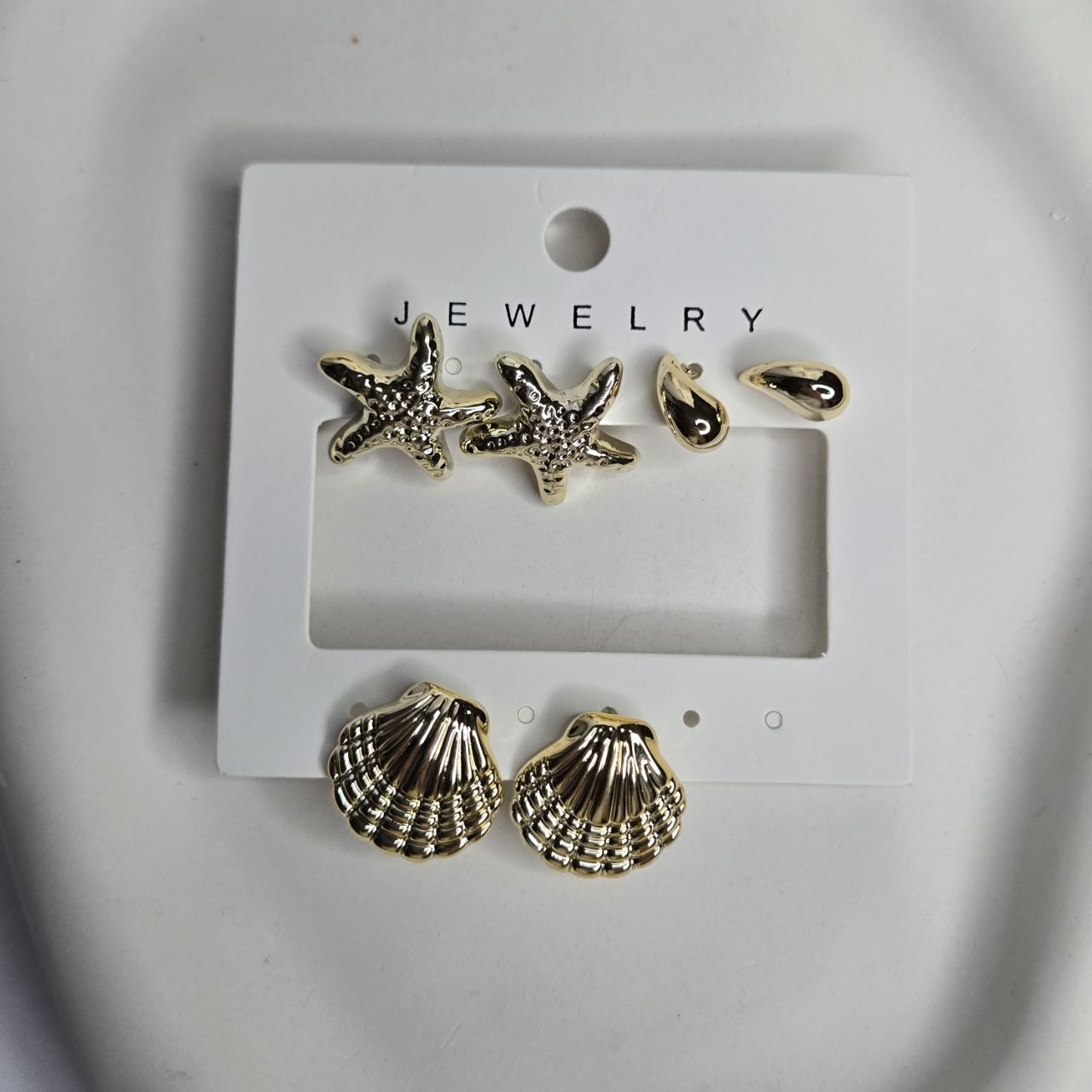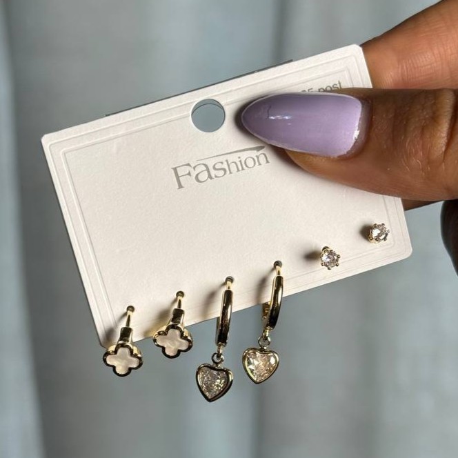 ست 3جفت گوشواره نگین و ونکیلیف صدفی و قلبناموجود