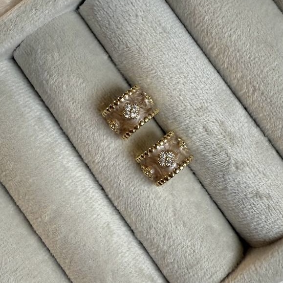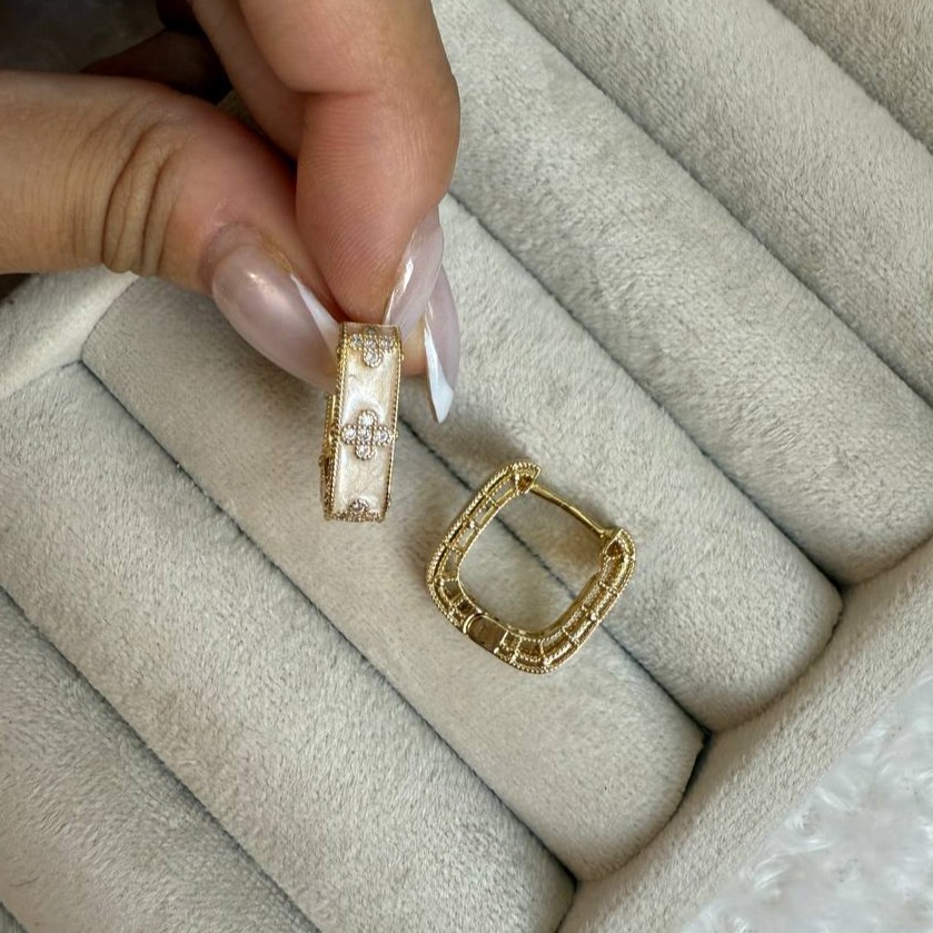 گوشواره ونکیلیف مربع میناکاری رنگ سفید شامپاینیناموجود