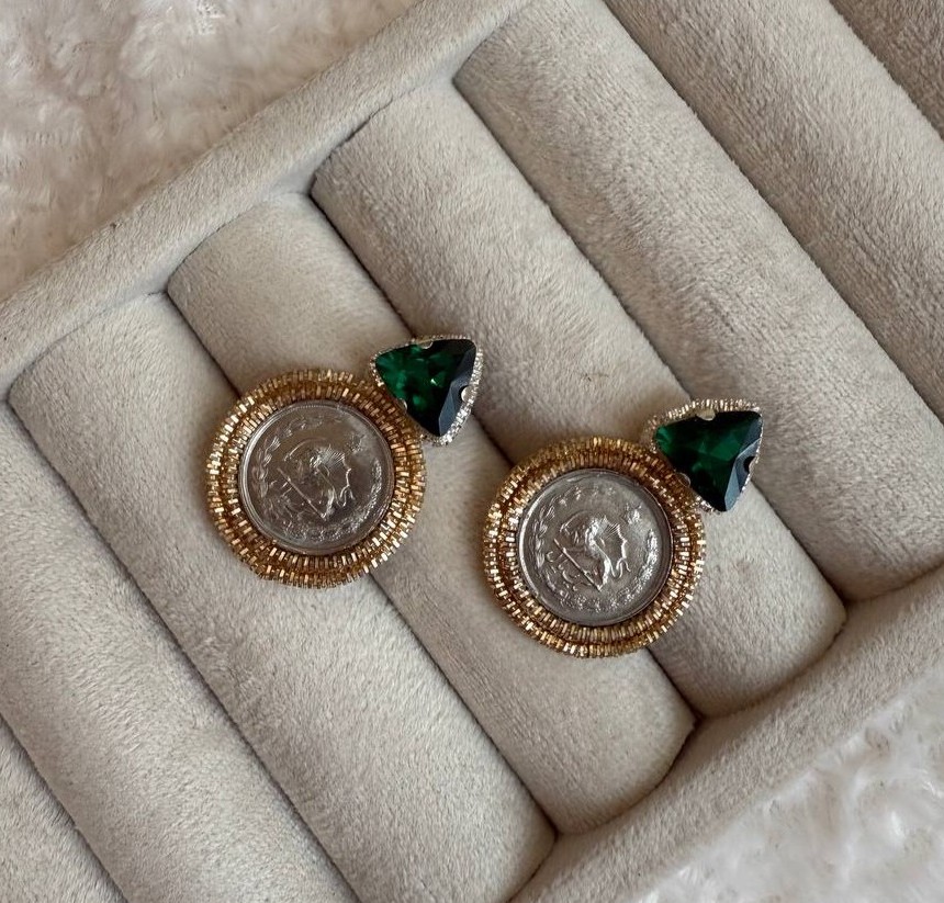گوشواره سکه ای طلایی با نگین سبزناموجود