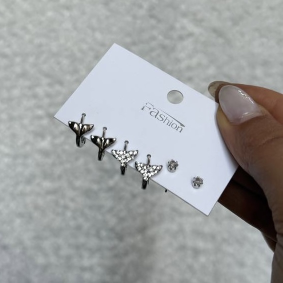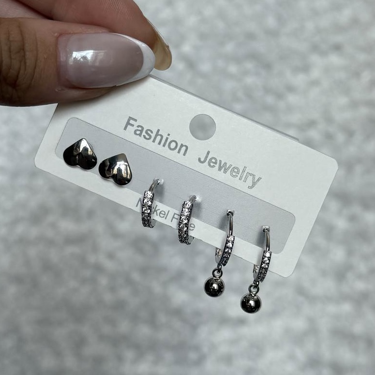 گوشواره پکی ۳تایی نقره ای کد ۱۸ناموجود