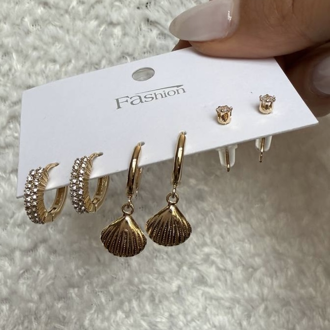 گوشواره پکی ۳تایی طلایی کد ۲۱ناموجود