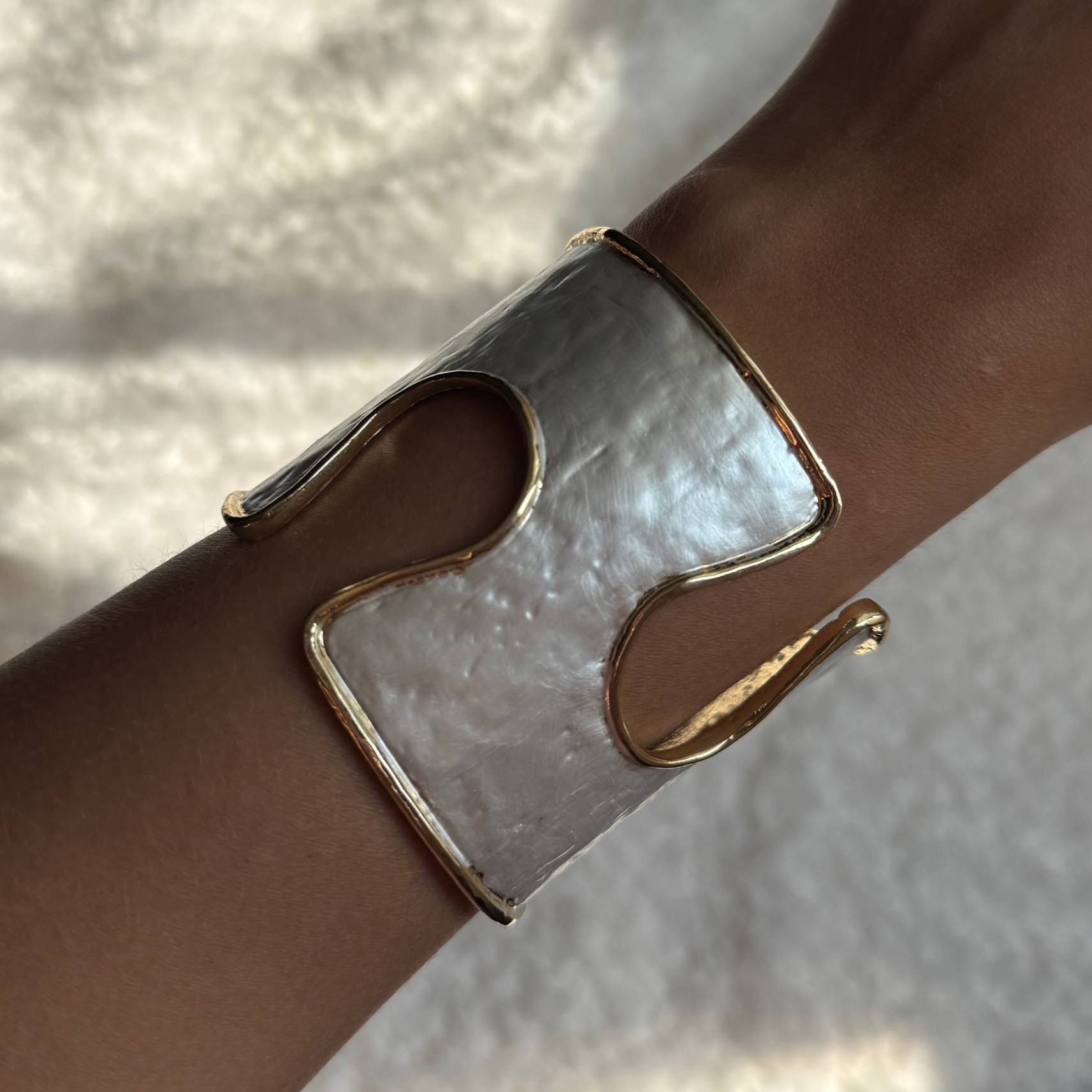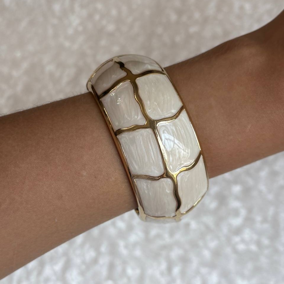 بنگل عاجی صدفی با قاب طلاییناموجود
