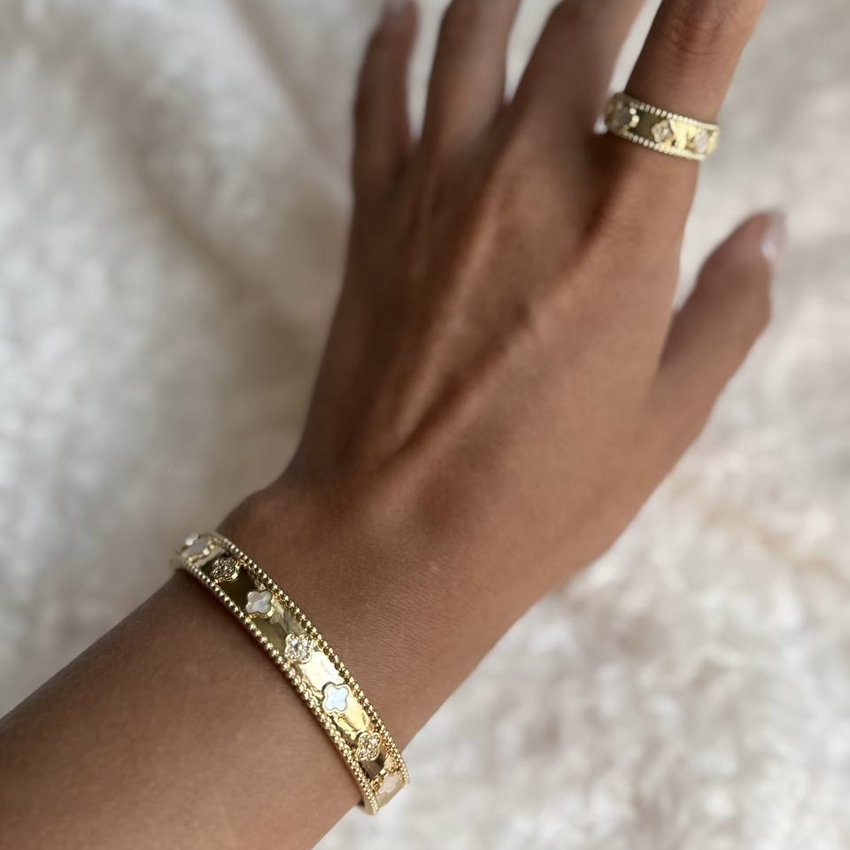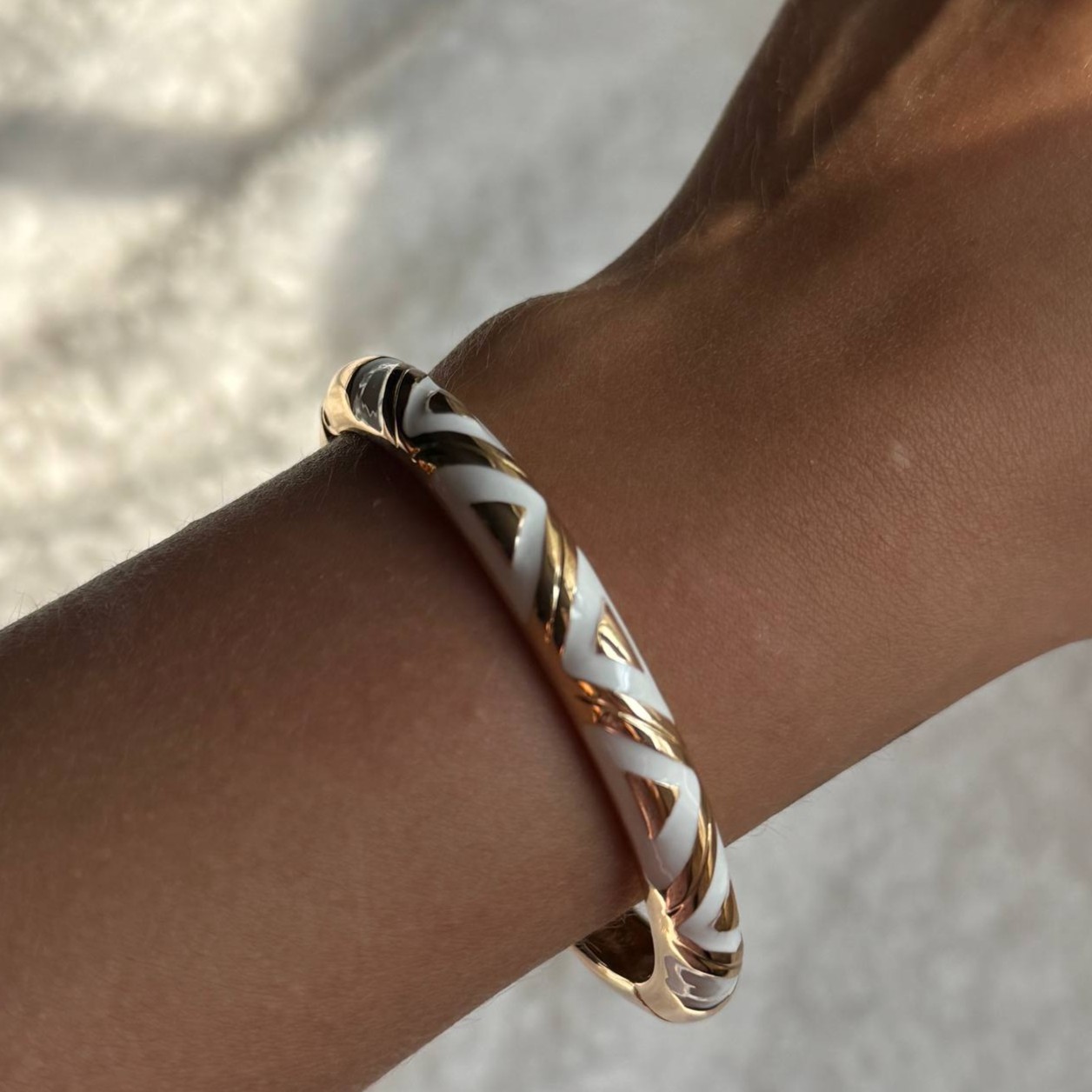 بنگل طلایی مینا کاری سفید طرح برگناموجود