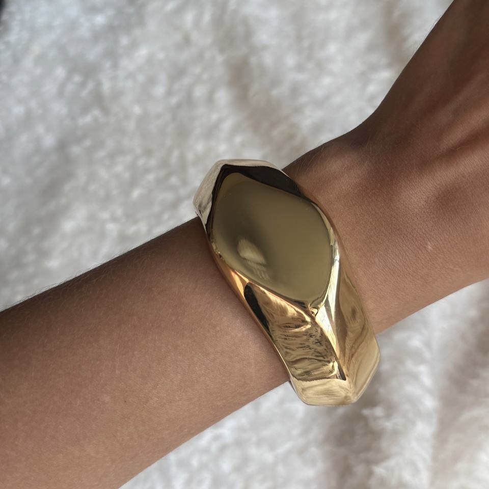 دستبند زارا ترند مدل پهن مهره طلاییناموجود