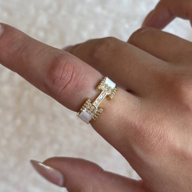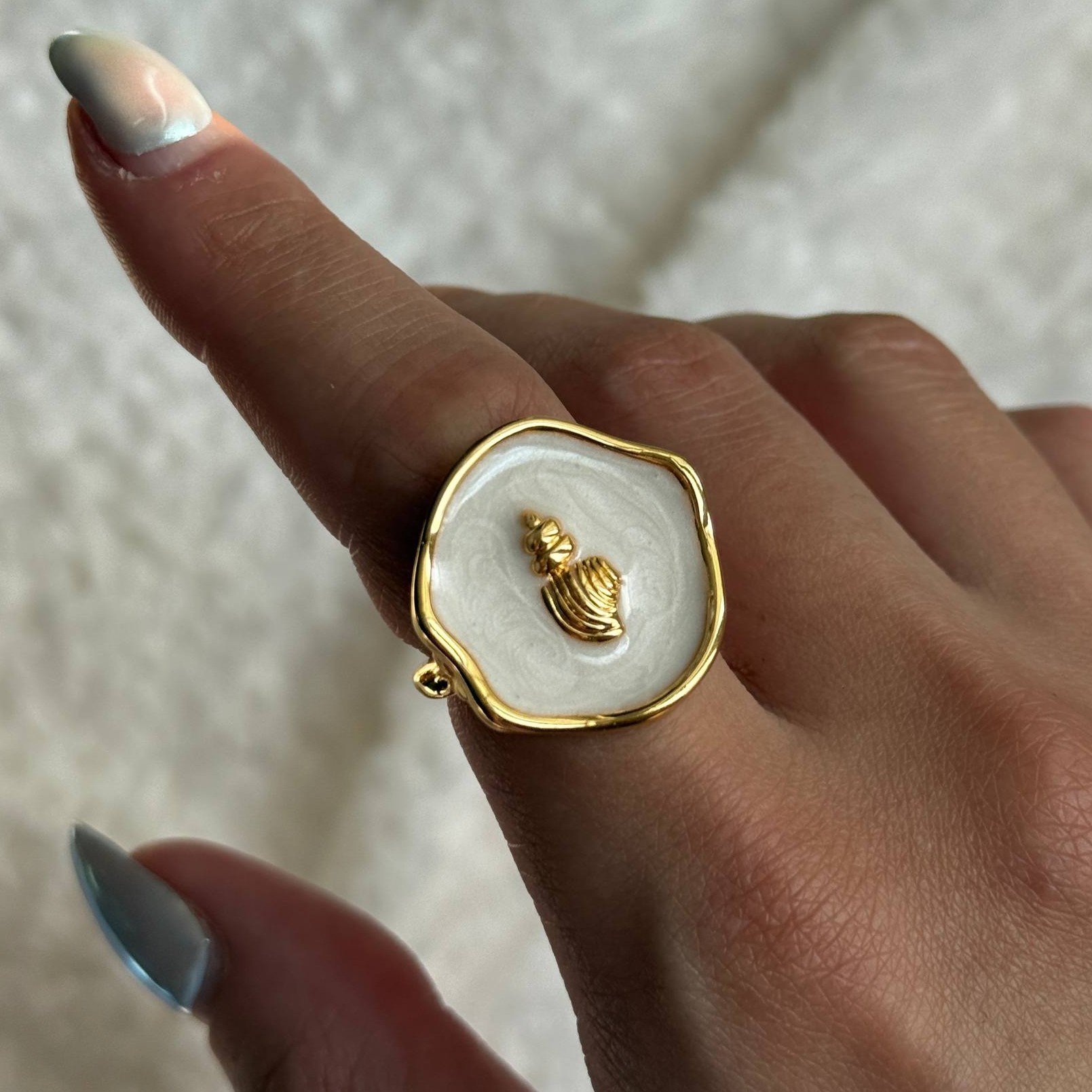 انگشتر میناکاری سفید با جزئیات طلایی۳۲۹٬۰۰۰ تومان