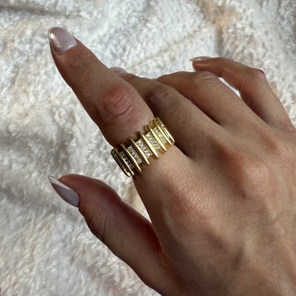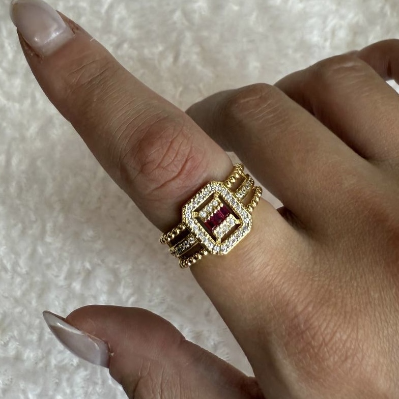 انگشتر لوکس طلایی نگین و خط دارناموجود