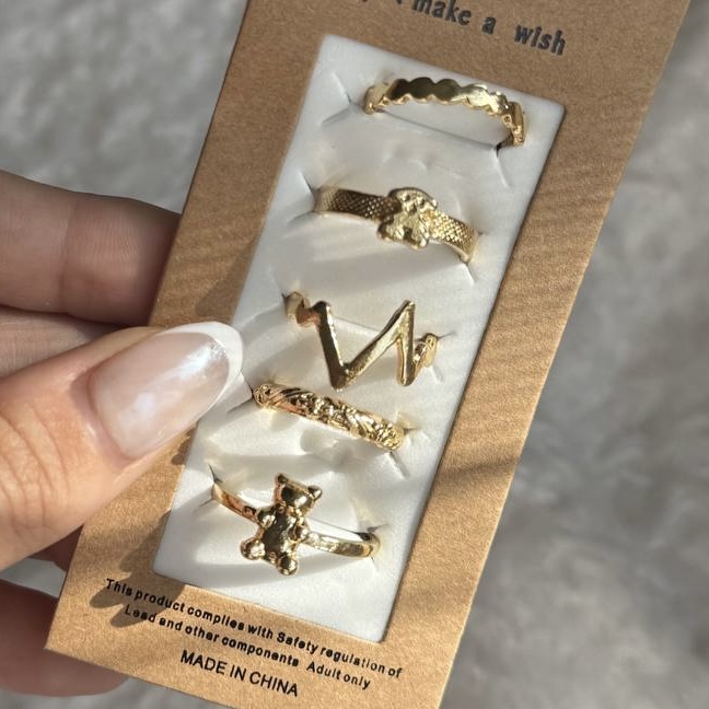 انگشتر پکی ۵تایی طلایی کد ۱۵ناموجود