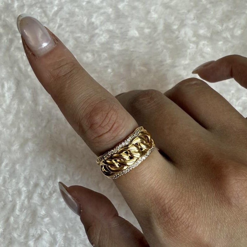 انگشتر طلایی با نگینهای ریز خطیناموجود