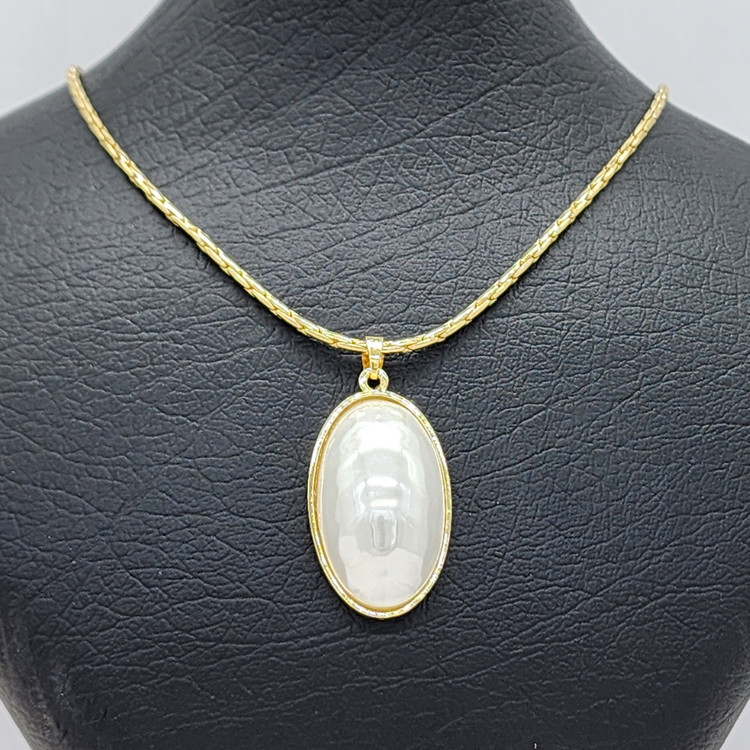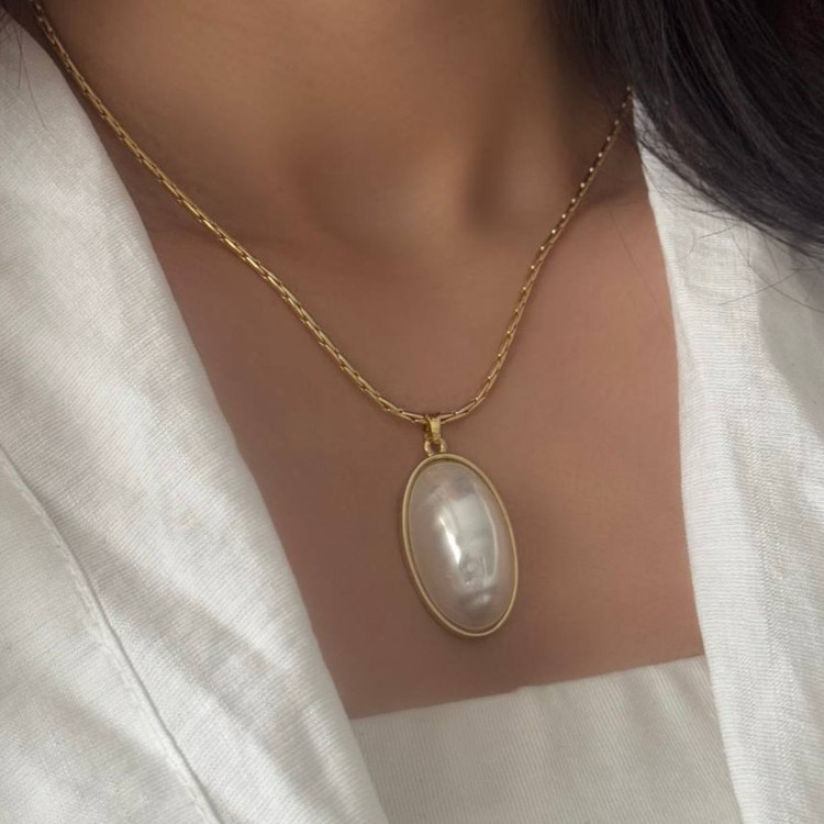گردنبند زنجیری با آویز صدفی بیضی شکل ✨🌸