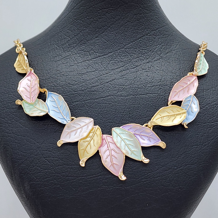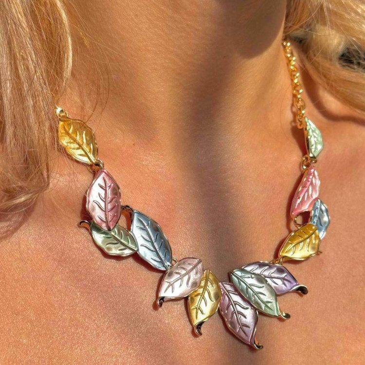 گردنبند برگهای رنگین با قاب طلایی ✨