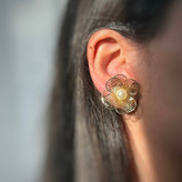 گوشواره زنانه طرح گل و مروارید سفید/پشت میخی