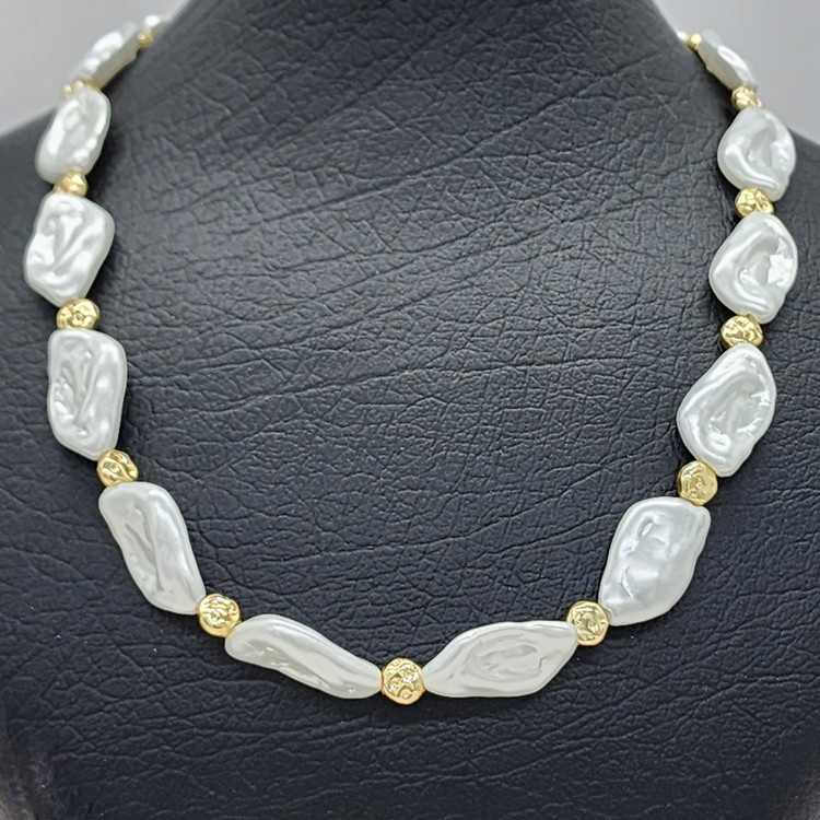 گردنبند زنانه باروک گوی طلایی تلفیقی از سبک کلاسیک و طراحی مدرن است. مهرههای باروک نامنظم با بافت طبیعی و گوی طلایی درخشان در مرکز این گردنبند، ترکیبی چشمنواز و لوکس بهوجود آورده که کاملاً مناسب استایلهای خاص، مجلسی، و حتی بوهو و هنری است.