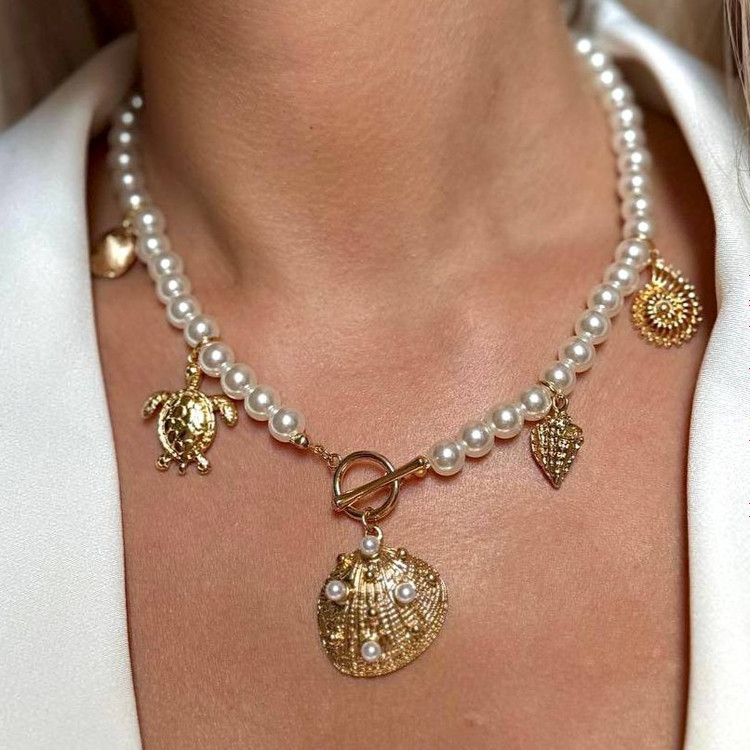 گردنبند مرواریدی با آویزهای دریایی