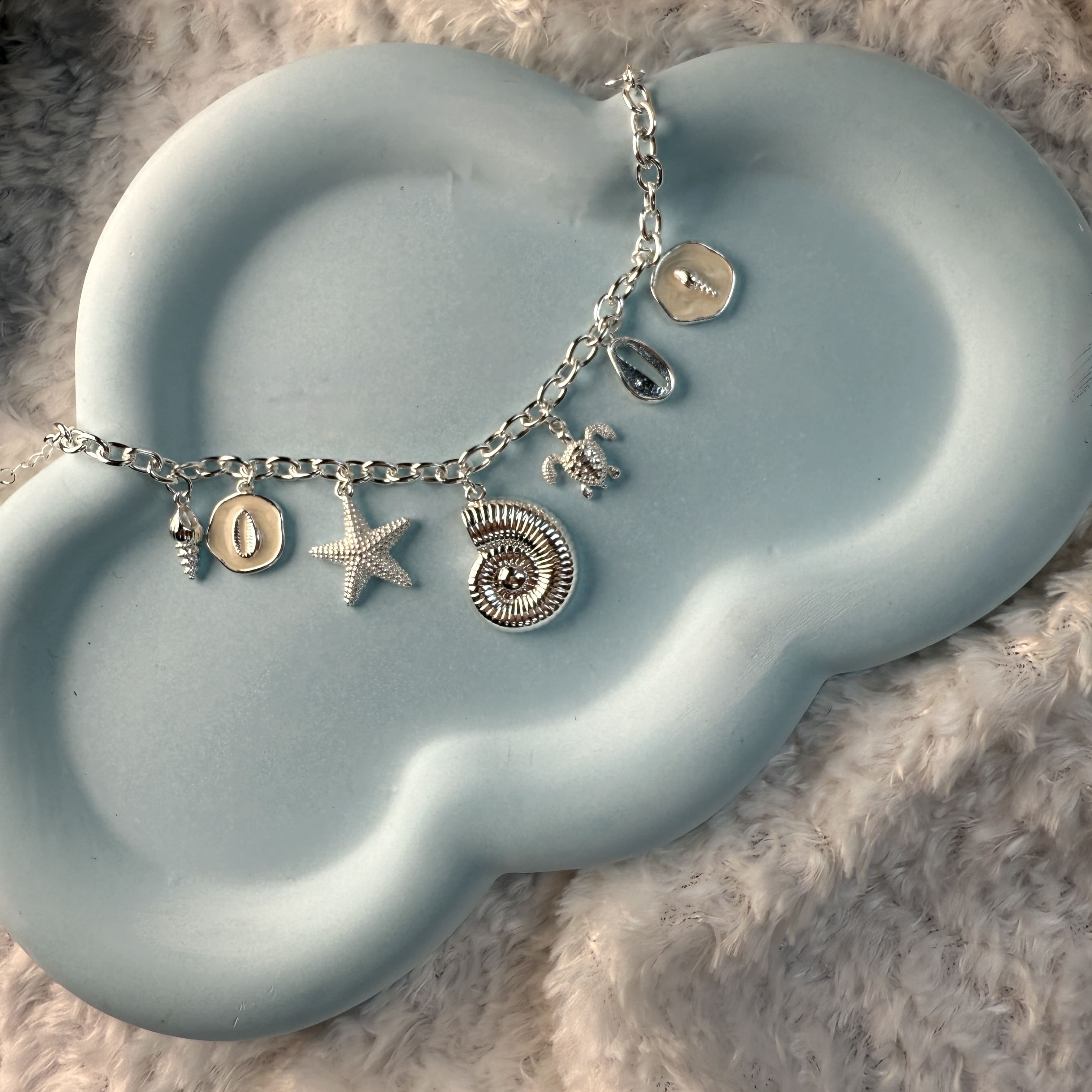 آویزها: ستاره دریایی، صدف حلزونی، لاکپشت، صدف کوچک و آویز دایرهای با طرح خاص