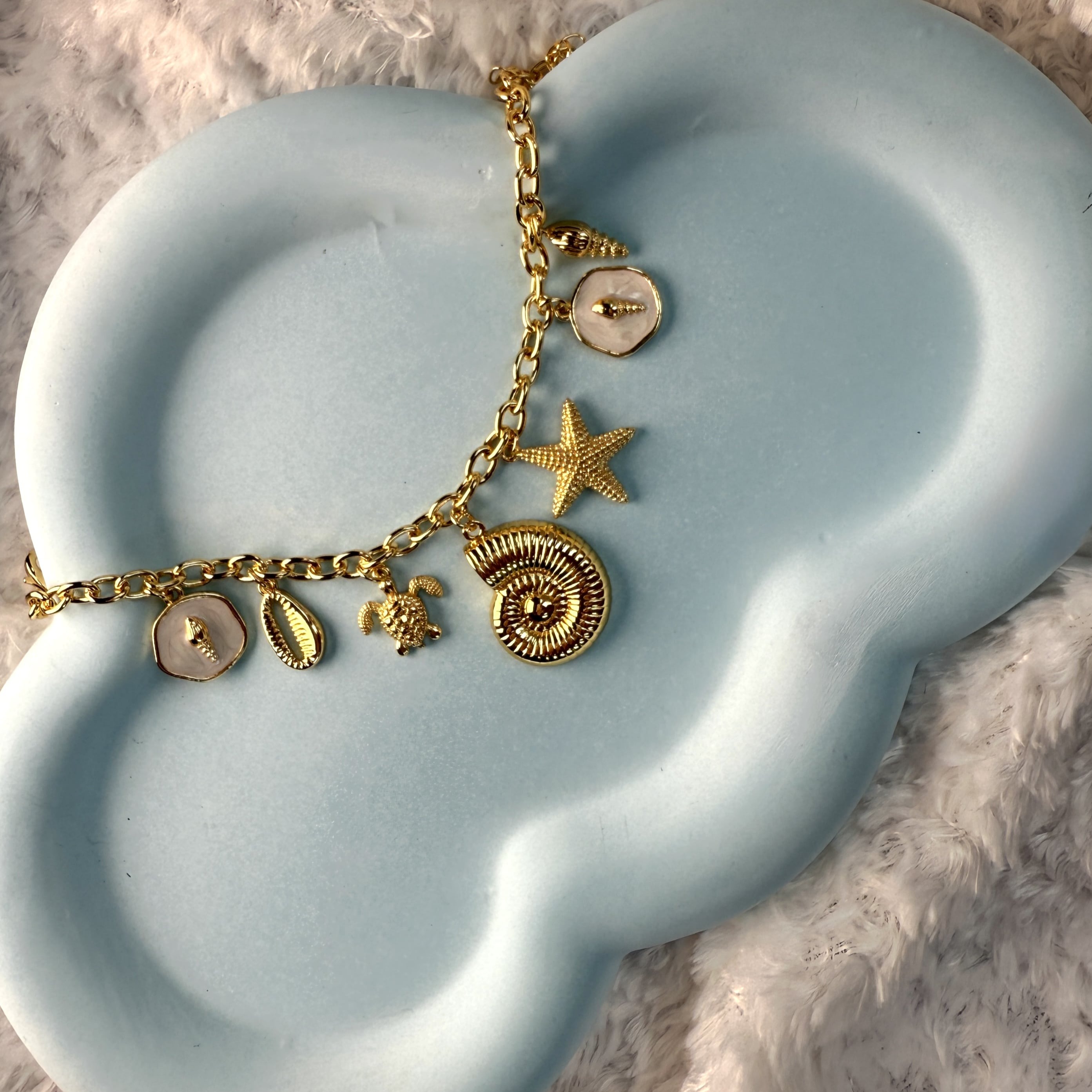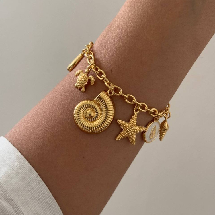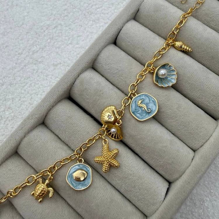 اگر به دنبال یک اکسسوری خاص و متفاوت هستید، این دستبند طلایی با آویزهای الهامگرفته از دریا انتخابی بینظیر برای شماست. طراحی این دستبند ترکیبی از ظرافت، خلاقیت و حس آرامش دریاست که میتواند استایل شما را به شکلی چشمنواز تکمیل کند.