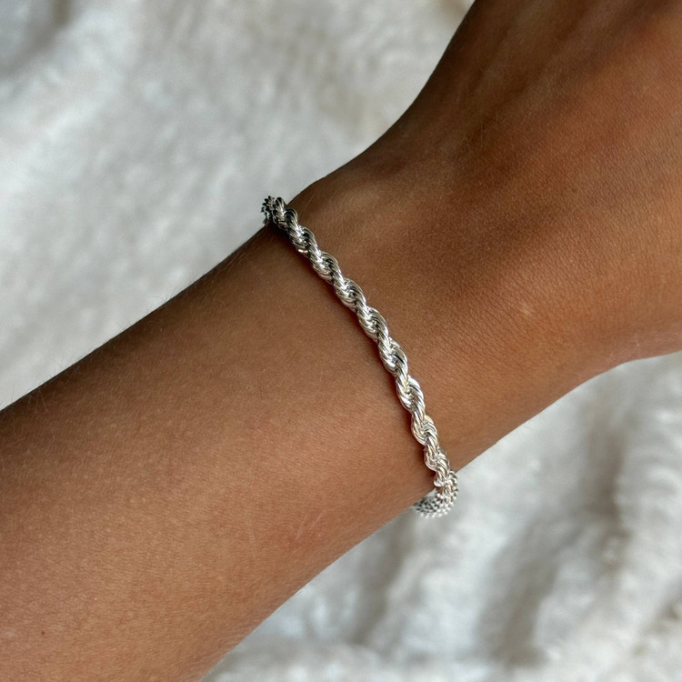 بافت طنابی نمادی از پیوند، قدرت و زیبایی در سادگی است. جلوهی نقرهای آن، درخششی خاص به مچ دست شما میبخشد.