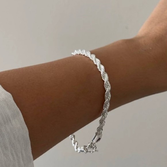 بافت طنابی نمادی از پیوند، قدرت و زیبایی در سادگی است. جلوهی نقرهای آن، درخششی خاص به مچ دست شما میبخشد.