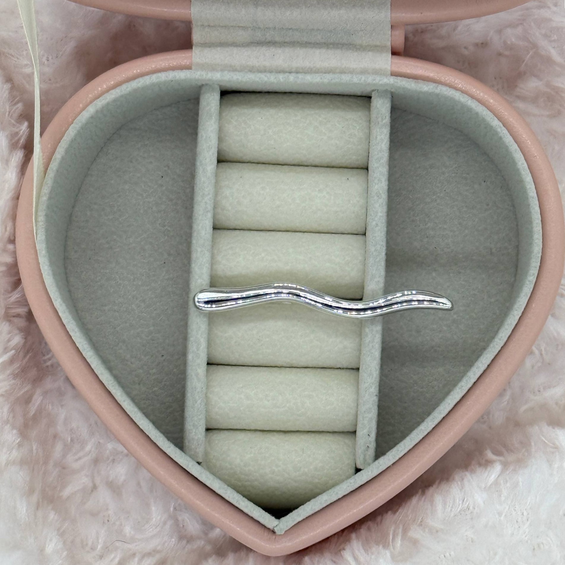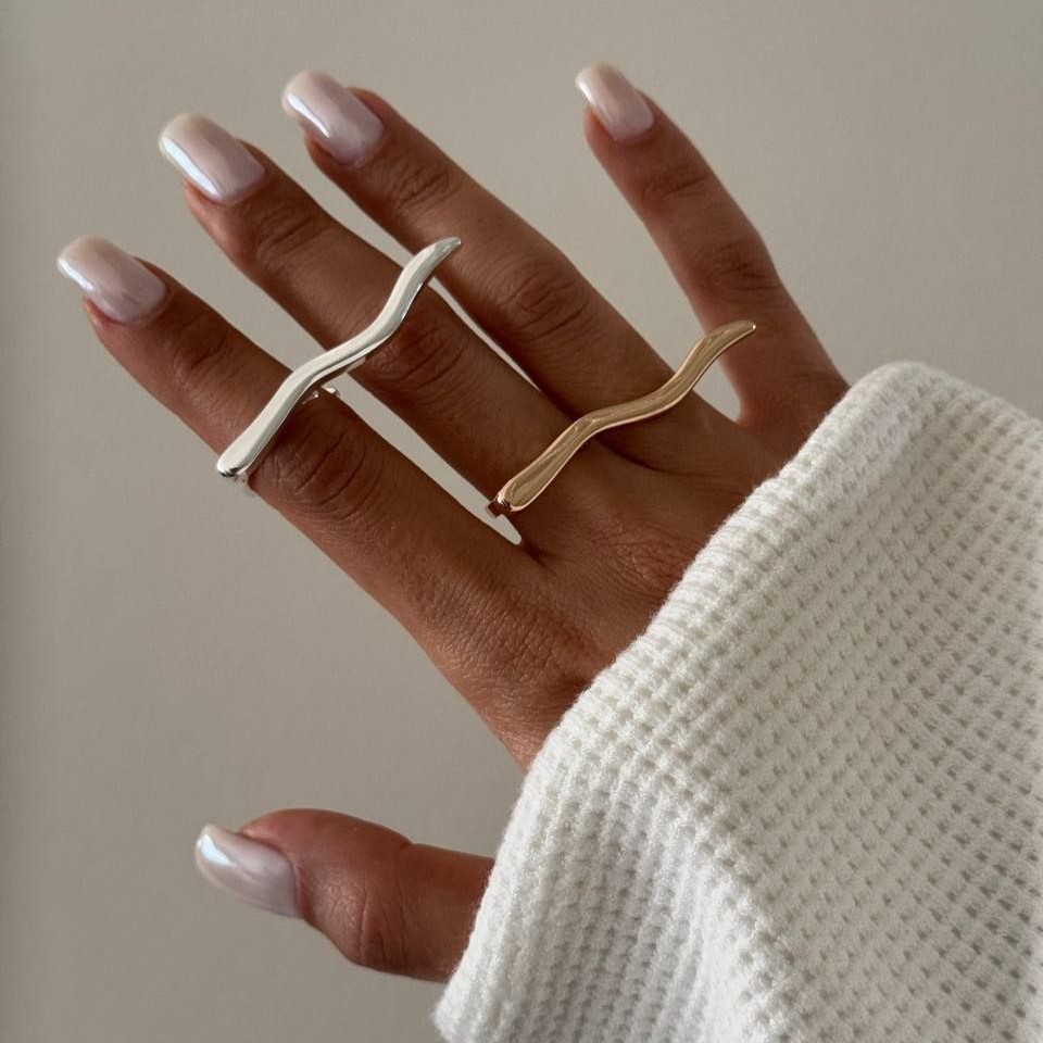 این انگشتر نقرهای با فرم موجدار و منحنیهای نرم، تلفیقی از هنر مدرن و ظرافت مینیمال است. طراحی آن به گونهایست که انگشت را بهزیبایی در بر میگیرد و جلوهای متفاوت و چشمگیر ایجاد میکند.