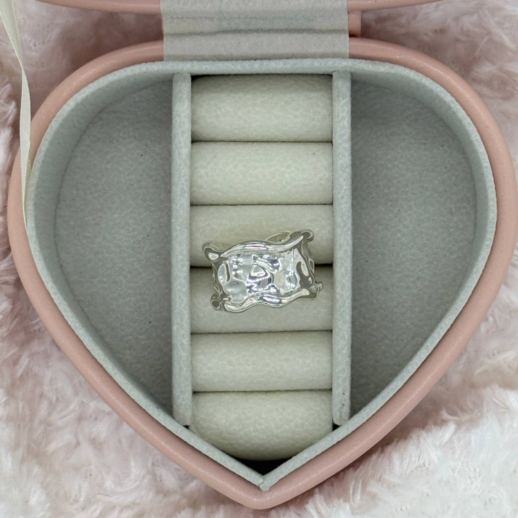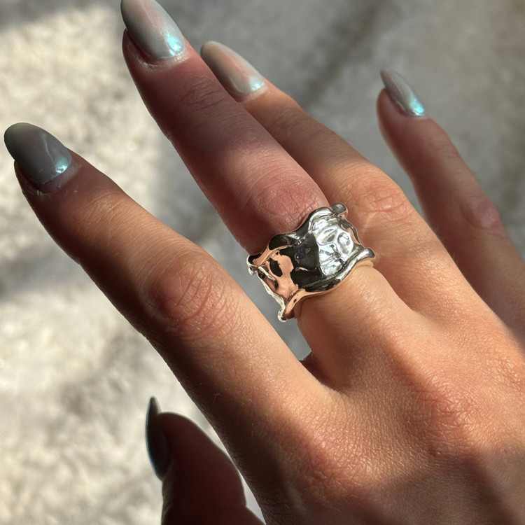 این انگشتر نقرهای با طراحی منحصربهفرد و فرم انتزاعی، انتخابی خاص برای کسانیست که به دنبال زیورآلات متفاوت و هنری هستند. سطح براق و انعکاس نور روی انگشتر، جلوهای چشمگیر به دستان شما میبخشد.