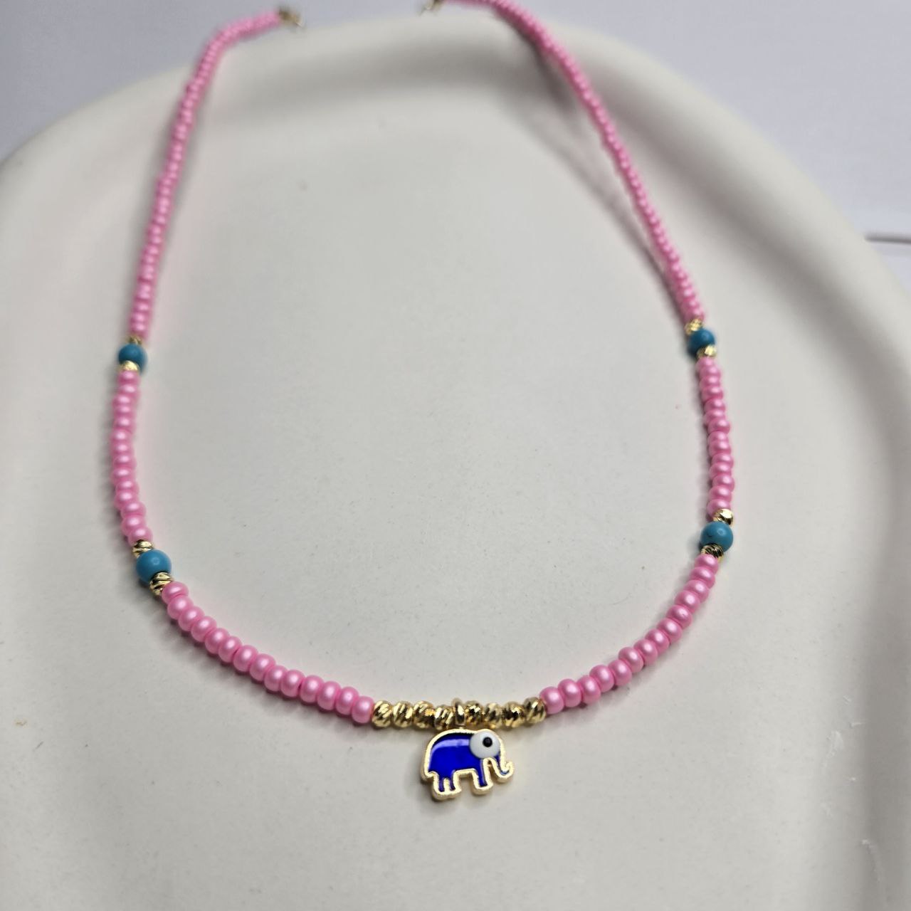 گردنبند مهرهای صورتی با آویز فیل آبی 🐘💖🌈