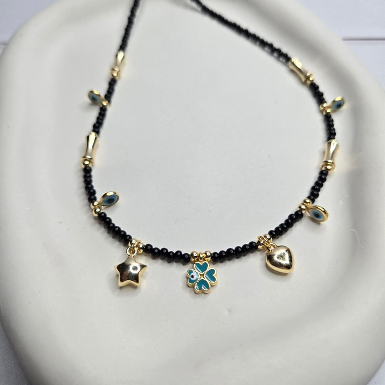 گردنبند تابستونی ساحلی شبدر و چشم نظر و قلب و ستاره