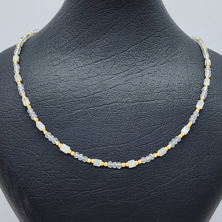 گردنبند کریستالی مینیمال با جزئیات طلایی ✨