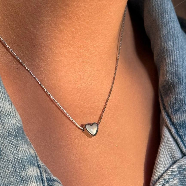 گردنبندی با طراحی مینیمال و آویز قلب صدفی براق که همهچیز رو در یک جمله خلاصه میکنه: