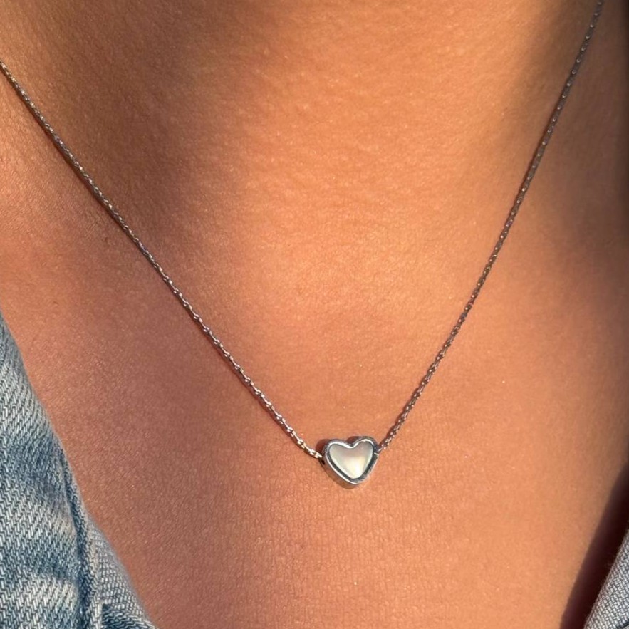 گردنبندی با طراحی مینیمال و آویز قلب صدفی براق که همهچیز رو در یک جمله خلاصه میکنه: