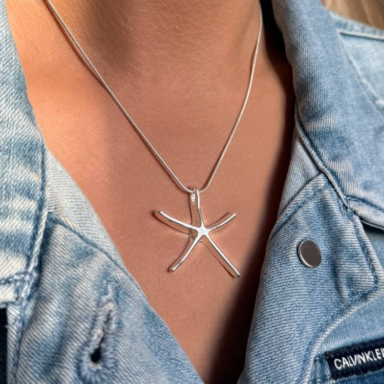 گردنبند طرح ستاره دریایی، با آبکاری نقره براق ✨ که جلوهای درخشان و خاص به استایل شما میدهد. طراحی ظریف و الهامگرفته از زیباییهای دریا، این گردنبند را به انتخابی عالی برای استفاده روزمره یا مهمانیها تبدیل کرده است 💎.