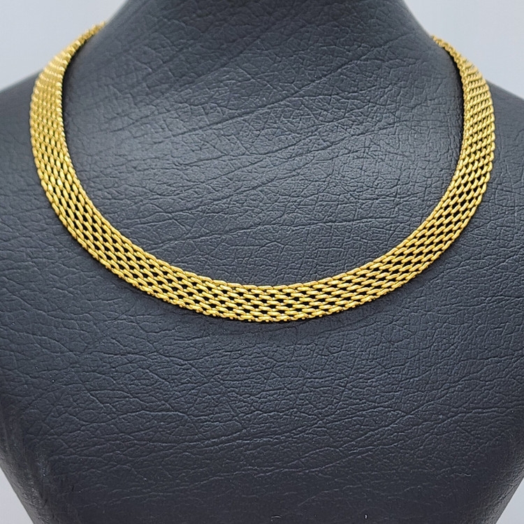این گردنبند پهن با آبکاری طلا و بافت ظریف زنجیری، جلوهای لوکس و خاص به استایل شما میبخشد. طراحی پهن و چشمگیر آن باعث میشود حتی با سادهترین لباسها، استایل شما بدرخشد و توجهها را جلب کند 🌟.