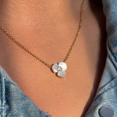 گردنبند ظریف طرح گل با آبکاری طلا و گلبرگهای صدفی براق، جلوهای لطیف و زنانه به استایل شما میبخشد. مرکز گل با نگینی ریز و درخشان 💎 تزیین شده که جذابیت آن را دوچندان میکند. این گردنبند انتخابی ایدهآل برای هدیه به عزیزان یا تکمیل یک استایل رمانتیک است 💛.