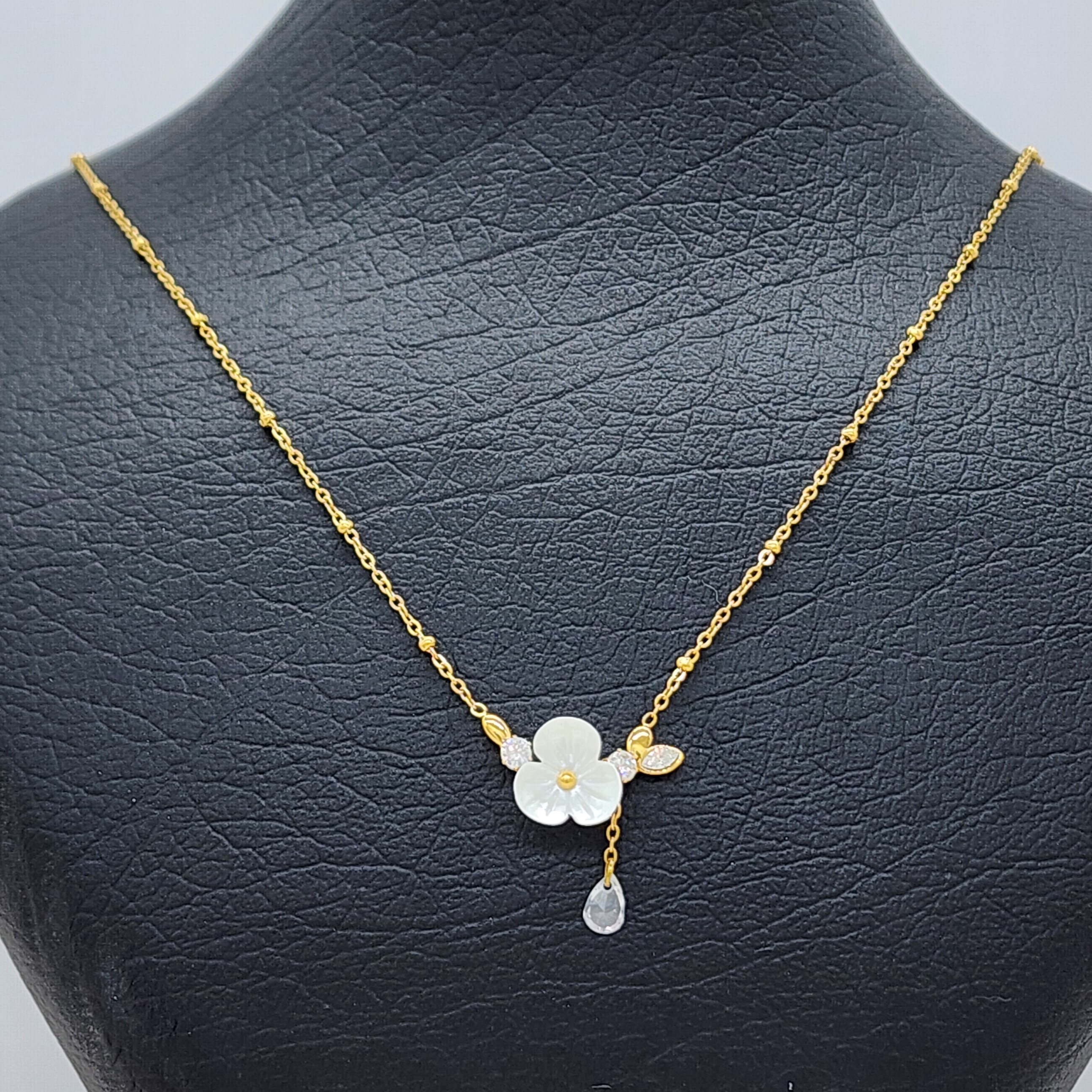 گردنبند سنگ صدف با گل سفید و نگین آویز اشک