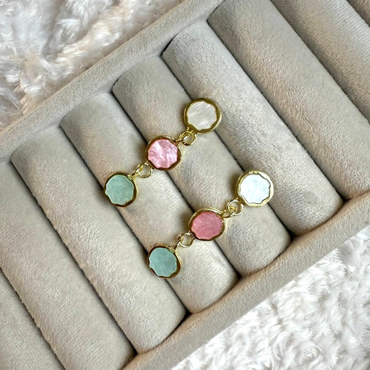 این گوشواره میناکاری شده که از رنگ های سفید صورتی و سبز پاستلی هست✨ و ظریف، جلوهای لوکس و زنانه و حتی اسپرت دارن و میتونن به استایل شما، چه روزمره و چه در مهمانیها، زیبایی خاصی ببخشن. اگر لباس صورتی کمرنگ یا سبز کمرنگ یا حتی سفید دارید این گوشواره میتونه به استایل شما روح بده🪭🪞