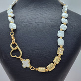 گردنبند مرواریدی با مهرههای طلایی و آویز قلب و ونکلیف سفید صدفی