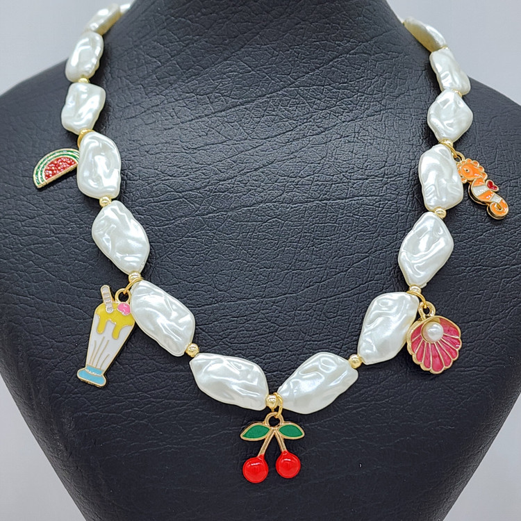 گردنبند مرواریدی با آویزهای خوراکی و دریایی 🍒🍦🐚🍉
