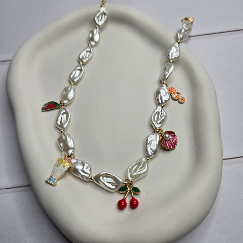 گردنبند مرواریدی با آویزهای خوراکی و دریایی 🍒🍦🐚🍉