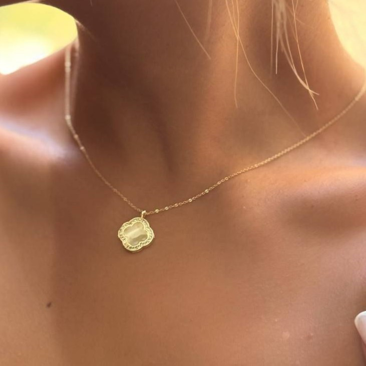 گردنبند ونکیلیف طلایی با آویز سنگ صدف طرح کلاسیک