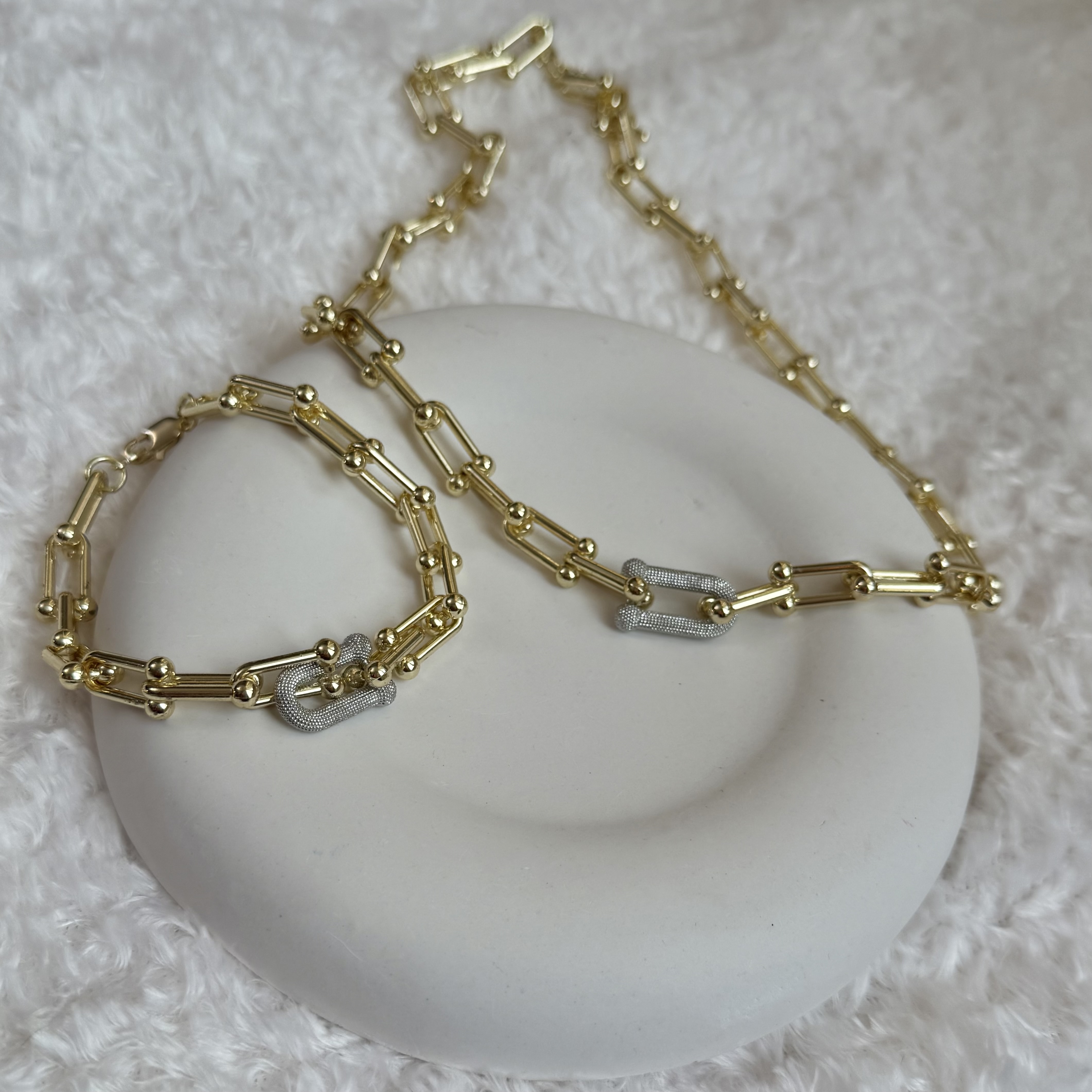 ✨ ست گردنبند و دستبند زنجیری – ترکیب خلاقانه فلزات با طراحی خاص