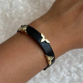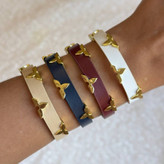 🦋 این ست دستبند چرمی مشکی و سفید با تزئینات طلایی، انتخابی بینظیر برای کسانیه که به دنبال اکسسوریهای خاص و نمادین هستن. طراحی متضاد رنگها در کنار جزئیات طلایی، جلوهای شیک و چشمنواز به استایل شما میبخشه.