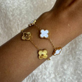 یه اکسسوری خاص و شیک برای استایل شما آماده کنید! 💃 دستبندهای ونکیلیف با طراحی زیبا و ظریف، مناسب برای خانمهای شیکپسند هستند. این دستبندها با زنجیر طلا و نگینهای شیشهای، جلوهای بینظیر به مچ دست شما میبخشند.