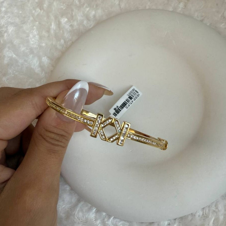 ✨ این دستبند ظریف طلایی با طراحی حرف "K" نگیندار، انتخابی عالی برای کسانیه که به دنبال اکسسوریهای شخصیسازیشده و شیک هستن. نگینهای ریز و درخشان روی بند و آویز مرکزی، جلوهای لوکس و چشمنواز به مچ دست میبخشن.