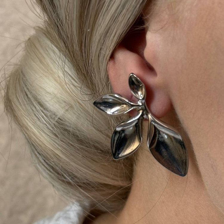 با این گوشواره برگمانند، هر نگاه را به خود جذب کنید. طراحی پنجپر برگها با سطحی براق و منعکسکننده نور، جلوهای مجلل و مدرن به استایل شما میبخشد. مناسب برای مهمانیهای شبانه، مراسم رسمی یا حتی ترکیب با لباسهای مینیمال روزمره 💃🖤