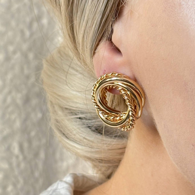 اگر به دنبال اکسسوریای هستید که هم کلاسیک باشه و هم خاص، این گوشواره طلایی با طراحی بافتدار و حلقههای درهمتنیده، انتخابی بینظیر برای شماست. با الهام از هنرهای دستی و فرمهای سلطنتی، این گوشواره جلوهای گرم و مجلل به استایل شما میبخشد—چه در مهمانیهای شبانه، چه در مراسم رسمی یا حتی برای عکسهای حرفهای 📸💛