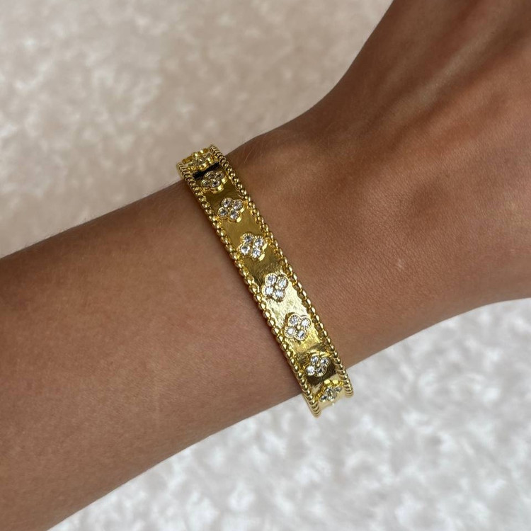 بنگل طلایی با نگینهای شفاف – درخشش بیپایان در هر حرکت