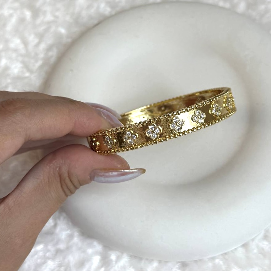 بنگل طلایی با نگینهای شفاف – درخشش بیپایان در هر حرکت