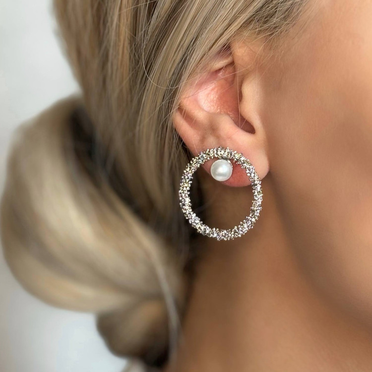 این گوشوارههای ظریف با طراحی حلقهای پوشیده از نگینهای درخشان و مروارید سفید در بالا، ترکیبی از زیبایی کلاسیک و ظرافت مدرن هستند. جلوهای لطیف و زنانه به استایل شما میبخشند—چه برای مهمانیهای رسمی، چه برای روزهای خاص.