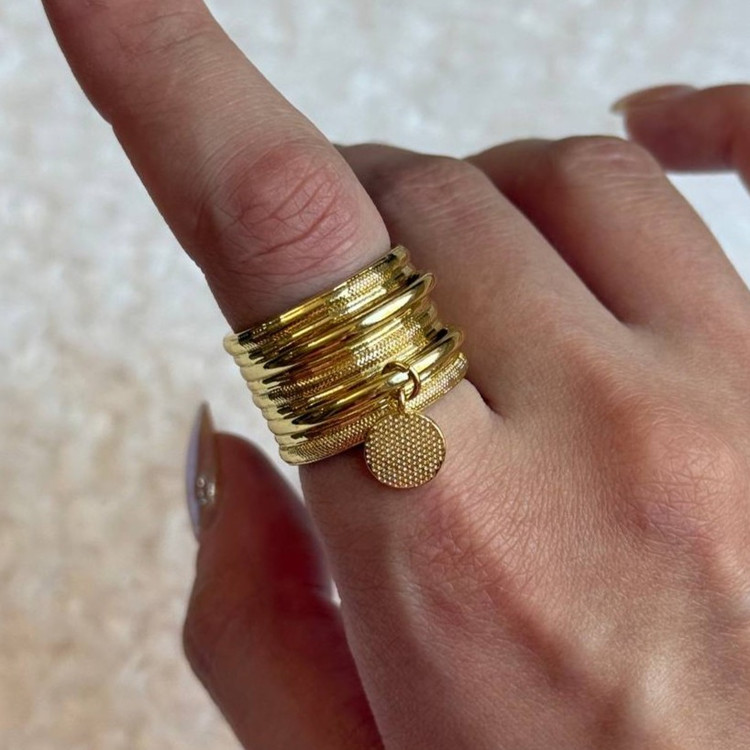 این انگشتر با طراحی چندلایه و سطح بافتدار، جلوهای خاص و مدرن دارد. آویز کوچک دایرهای که از یکی از حلقهها آویزان شده، حس حرکت و جزئیات هنری را به زیبایی اضافه میکند. مناسب برای کسانیست که به دنبال یک قطعهی مستقل، جسور و متفاوت هستند.
