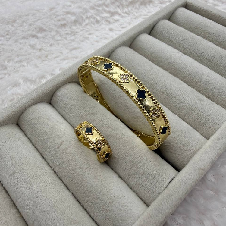 ست بنگل و انگشتر ونکلیف مشکی و طلایی