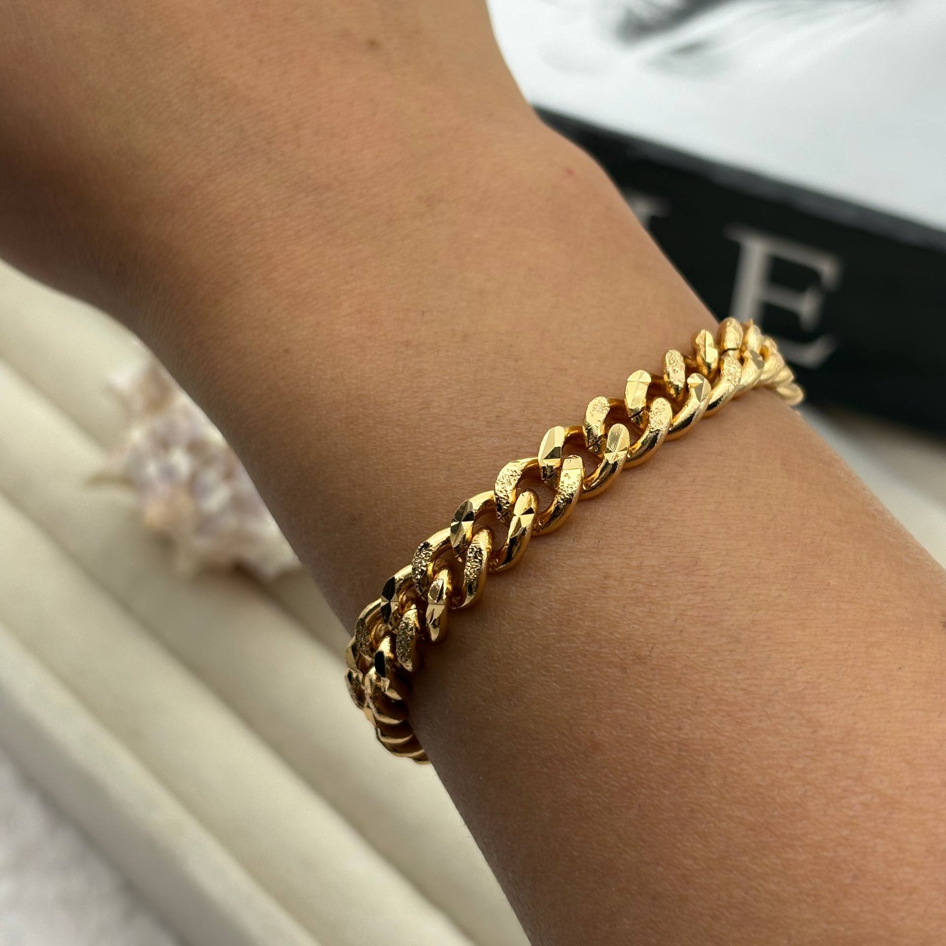 این دستبند زنجیری از برند معتبر ژوپینگ با رنگ رزگلد و طراحی صیقلی، ترکیبی از کیفیت بالا، ظرافت زنانه و استایل مدرن را ارائه میدهد. اتصالهای استوانهای و حلقههای نگیندار، جلوهای معماری و درخشان دارند که در کنار رنگ رزگلد، حس لطافت و شکوه را همزمان منتقل میکنند. قفل جعبهای با ضامن امنیتی، استفادهی راحت و مطمئن را تضمین میکند.