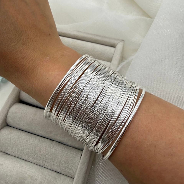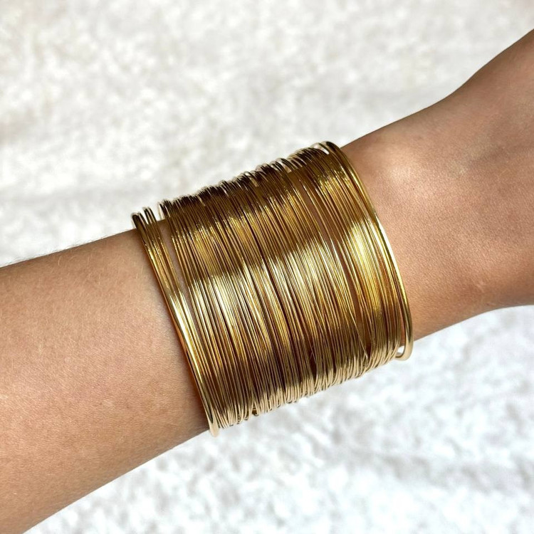 این بَنگل طلایی با فرم پهن و سطح صیقلی، یک قطعهی استیتمنت و شیک است که با کمترین جزئیات، بیشترین تأثیر را دارد. طراحی ساده و یکدست آن، حس قدرت، اعتماد به نفس و زیبایی مدرن را منتقل میکند. مناسب برای ست کردن با لباسهای مینیمال، رسمی یا حتی روزمره با چاشنی لوکس.